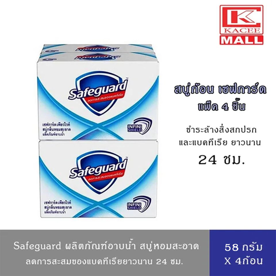 Safeguard เซฟการ์ด เพียวไวท์ สบู่แอนตี้แบค สบู่กำจัดเชื้อโรค สบู่กลิ่นหอมสะอาด 58 กรัม x4 ชิ้น เมื่อมาถึงยุค New Normal ที่เรื่องความสะอาดมีความสำคัญอันดับแรก ทุกคนต่างก็มุ่งดูแลสุขอนามัยส่วนบุคคลกันอย่างมาก ซึ่งการล้างมือเป็นประจำนั้นคือการเริ่มต้นง่าย ๆ แต่มีประสิทธิภาพที่สุดของการดูแลสุขอนามัยส่วนบุคคล เพราะมือคนเราคือส่วนแรกของร่างกายที่มักจะสัมผัสโดยตรงกับพื้นผิวต่าง ๆ บ่อยครั้งในแต่ละวัน ทำให้เกิดความเสี่ยงในการติดเชื้อโรคและเชื้อแบคทีเรียชนิดต่าง ๆ มากที่สุด ซึ่งในบางกรณีอาจทำให้ถึงแก่ชีวิตได้ สิ่งที่ทุกคนควรจะทำเพื่อรักษาสุขอนามัยส่วนบุคคลให้เป็นนิสัยก็คือ การล้างมือให้สะอาดอยู่เป็นประจำด้วยสบู่ที่มีประสิทธิภาพในการยับยั้งเชื้อโรคและแบคทีเรีย เพื่อลดการแพร่กระจายของเชื้อโรค และลดความเสี่ยงในการติดเชื้อโรคซึ่งจะนำมาซึ่งความเจ็บป่วยได้