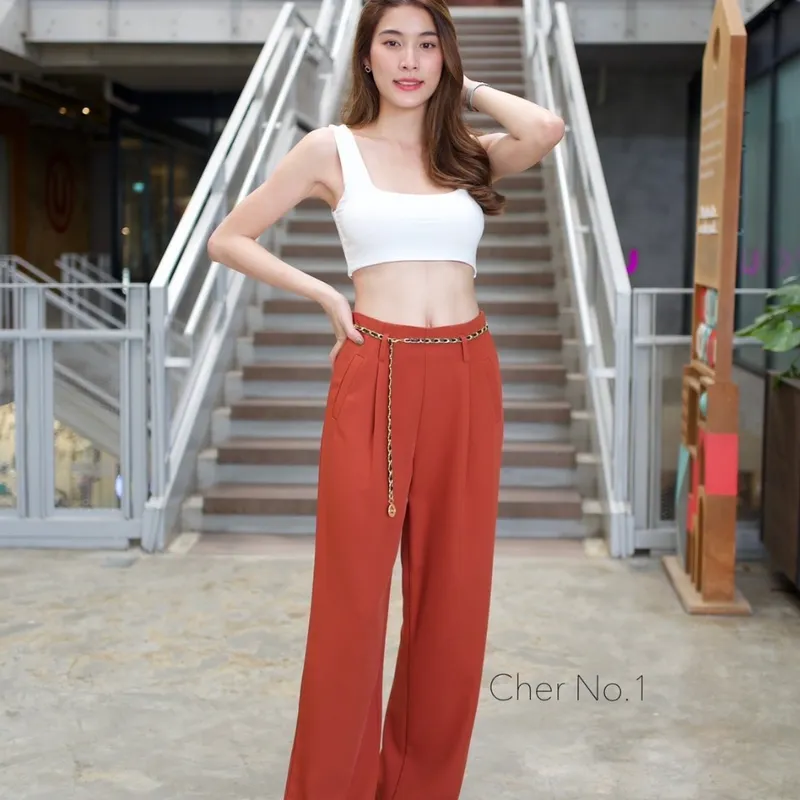 กางเกงขายาว ผ้าหนา ทรงกระบอก งานขึ้นห้าง มีDetailเป็นโซ่ เพิ่มเสน่ห์ ให้ดูหน้ามอง เนื้อผ้าไม่หนักเกินไป