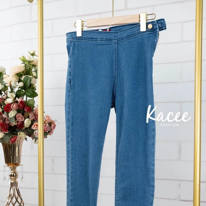 กางเกงยีนส์สกินนี่ซิปข้าง (O070) กางเกงยีนส์แฟชั่น กางเกงยอดนิยม สินค้านำเข้าสไตล์เกาหลี สินค้าพร้อมส่งกางเกงเอวสูง ทรงเดฟยืด กางเกงใส่ทำงาน ทรงสลิม