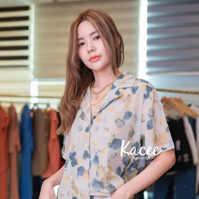• รายละเอียดสินค้า: ชุดเซต เสื้อแขนสั้น คอปก ลายกลีบดอกไม้ ผ้าลื่นผ้าพลิ้ว