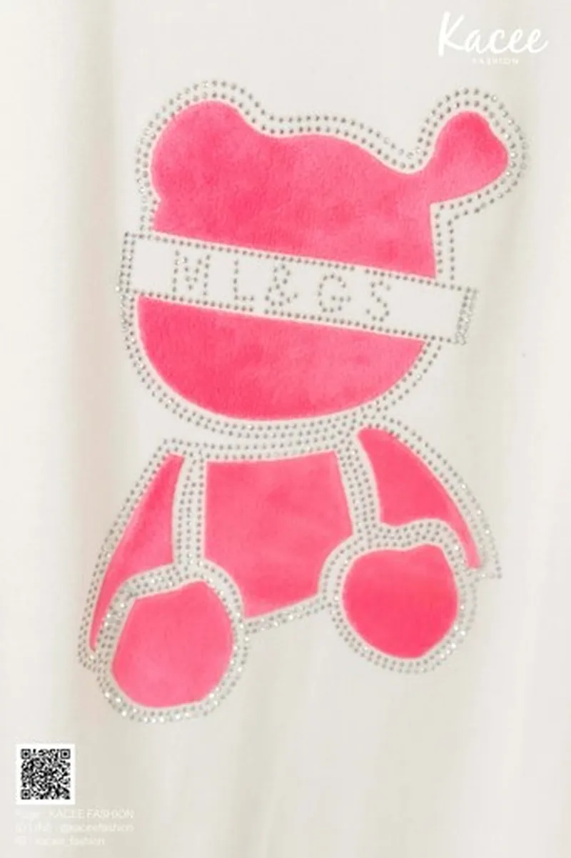เสื้อยืดคอกลม ลายหมีแต่งขอบเพชร ผ้าดี ใส่สบาย