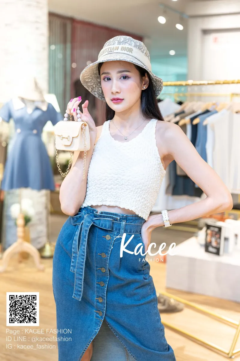 รายละเอียดสินค้า: กระโปรงยีนส์ เข็มขัดผูกโบว์ ผ่าหน้า กระดุมหน้า7เม็ด