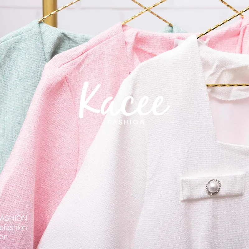 : ชุดเดรสแขนสั้น คอเหลี่ยม กระดุมมุกขอบเงินหน้ายาว6เม็ด กระเป๋าหลอก4ช่อง บน-ล่าง แต่งกระดุมมุกขอบเงินช่องละ1เม็ด