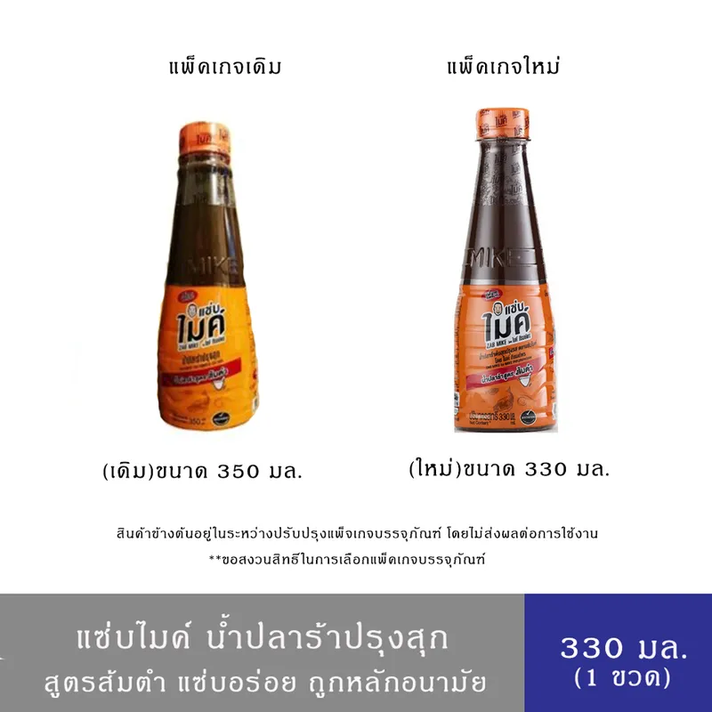 Zab Mike น้ำปลาร้า แซ่บไมค์ สูตรส้มตำ 330 มล. สะดวก ปลอดภัย ปรุงอะไรก็อร่อย 330 ml. น้ำปลาร้าปรุงสุก แซ่บไมค์ หอม อร่อย สะอาด สะดวก ใช้ปรุงอะไรอร่อย ตำส้มตำ ยำ แกง ผัด ใส่ปรุงรสได้หมดสะอาด สะดวก ปลอดภัย น้ำปลาร้าหอม ไม่เหม็นคาว ไม่เหม็นติดมือ แต่ว่าหอมอร่อย ผลิตจากปลาคุณภาพชั้นส่วนประกอบ1.น้ำปลาร้าโหน่ง 80% (Pickled Fish Sauce )2.น้ำเกลือ 10% (Salted Water)3.น้ำตาลทราย 5% (Sugar)4.โมโนโซเดียมกลูตาเมต 5% ( monosodium glutamate)