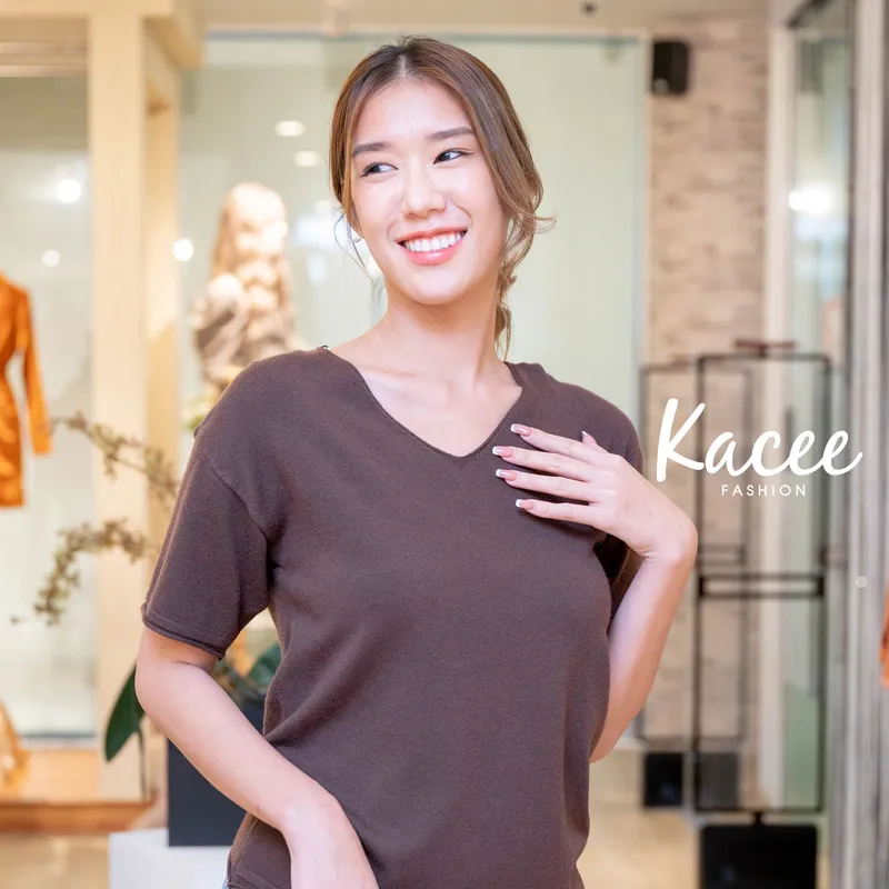 • เสื้อยืดไหมพรม ยี่ห้อ ARITA• ผลิตจาก ไหมพรม • ผ้าไหมพรมยืดนิ่มใส่สบาย • คอวี แขนสั้น