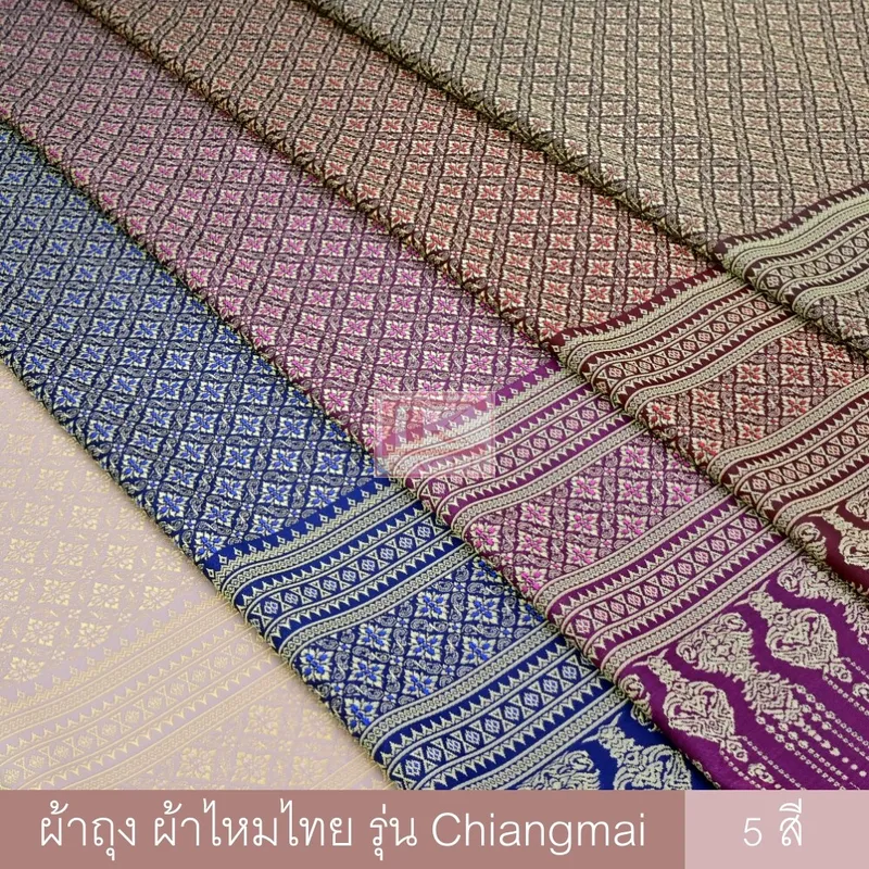 ► ผ้าไหมไทยใยสังเคราะห์ รุ่น Chiangmai ทอลายชัดเจนด้วยเครื่องมือที่มีคุณภาพโดยฝีมือคนไทย ผ้าเนื้อดี เนื้อแน่น สีไม่ตก
