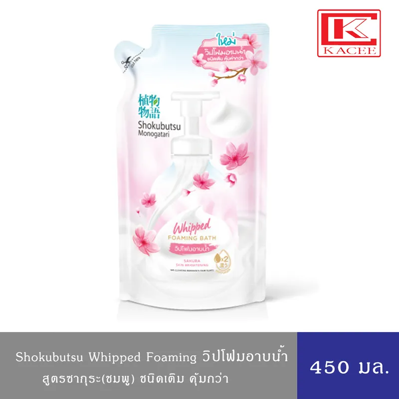 วิปโฟมอาบน้ำ โชกุบุสซึ โมโนกาตาริ สูตร ผิวเนียนนุ่ม ดูกระจ่างใส สูตรซากุระ ถุงเติม 450 มล.( Sakura )