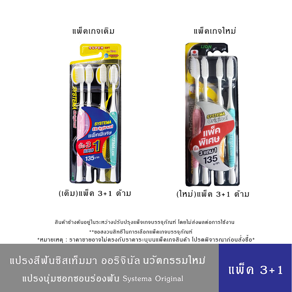 แปรงสีฟัน ซิสเท็มมา รุ่นหัวแปรง ขนแปรง นุ่มพิเศษ ขนาดออริจินัล [แพ็ค 3 ฟรี 1]
