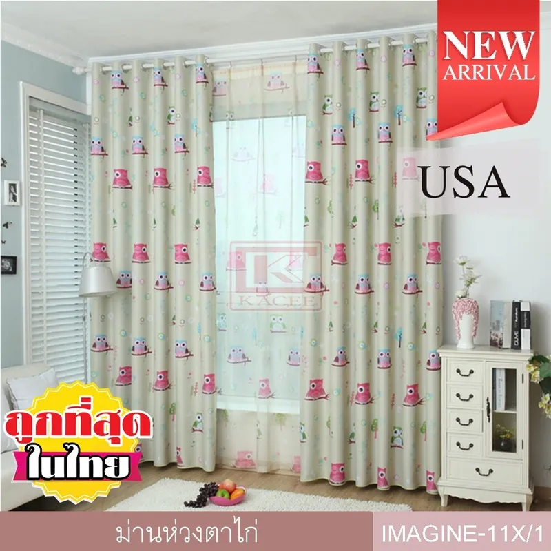 Kacee ขอนำเสนอผ้าม่าน Dim Out หน้ากว้างรุ่นใหม่ล่าสุด ลายนกฮูกสีสันสดใส เนื้อผ้าผลิตจาก Polyester 100% ชั้นกลางทอด้วยเส้นด้ายสีดำช่วยทำให้ผ้ากรองแสงและความร้อนได้ดีถึง 98%