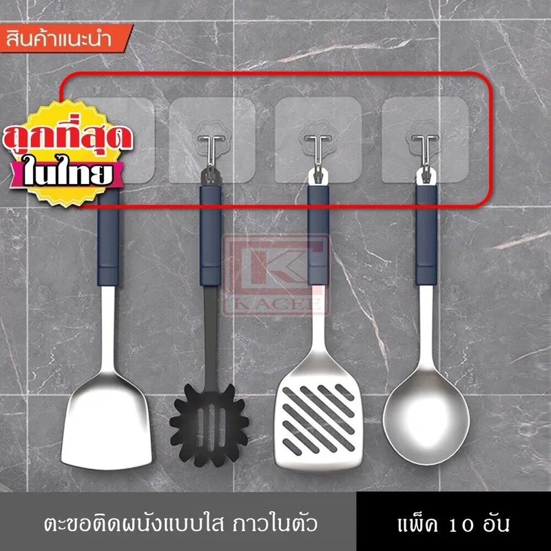 ตะขอแขวนของ แขวนผ้า ที่แขวนผ้า แขวนของ ตะขอแขนอเนกประสงค์ เหนียวแน่น ทนทาน รับน้ำหนักได้ดี กาวในตัว (แพ็ค 10 อัน)