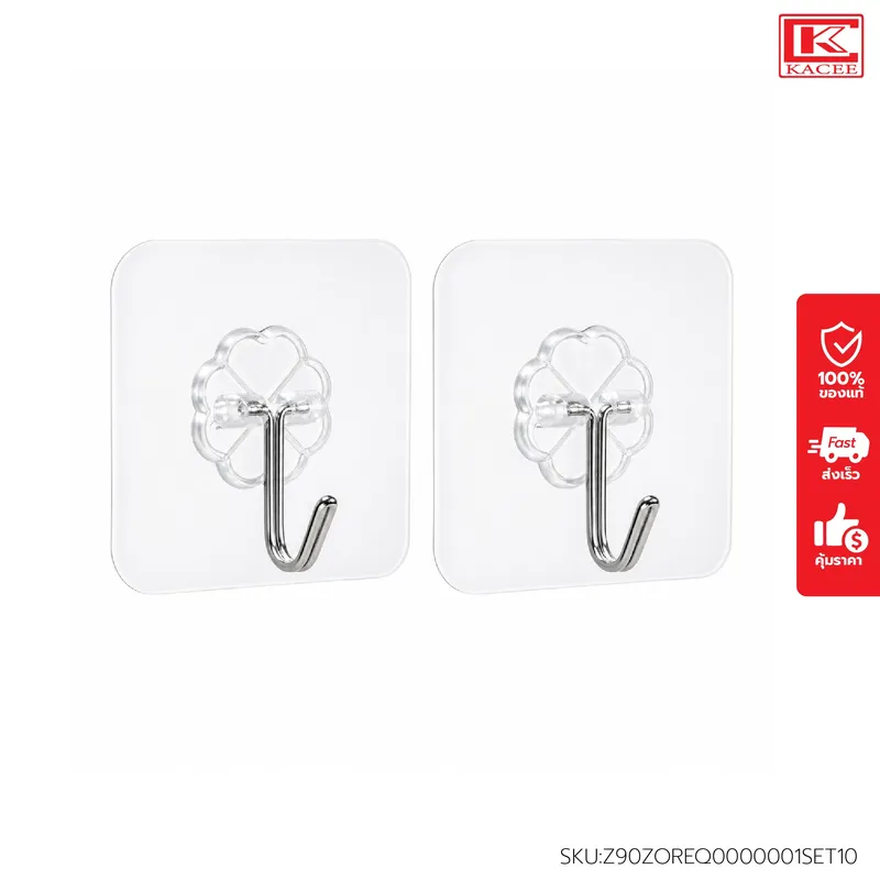 ตะขอแขวนอเนกประสงค์ แบบใหม่พลาสติกใส ซึ่งมีความทนทาน ยึดเกาะผนังได้ดีกว่าแบบกาวโฟม