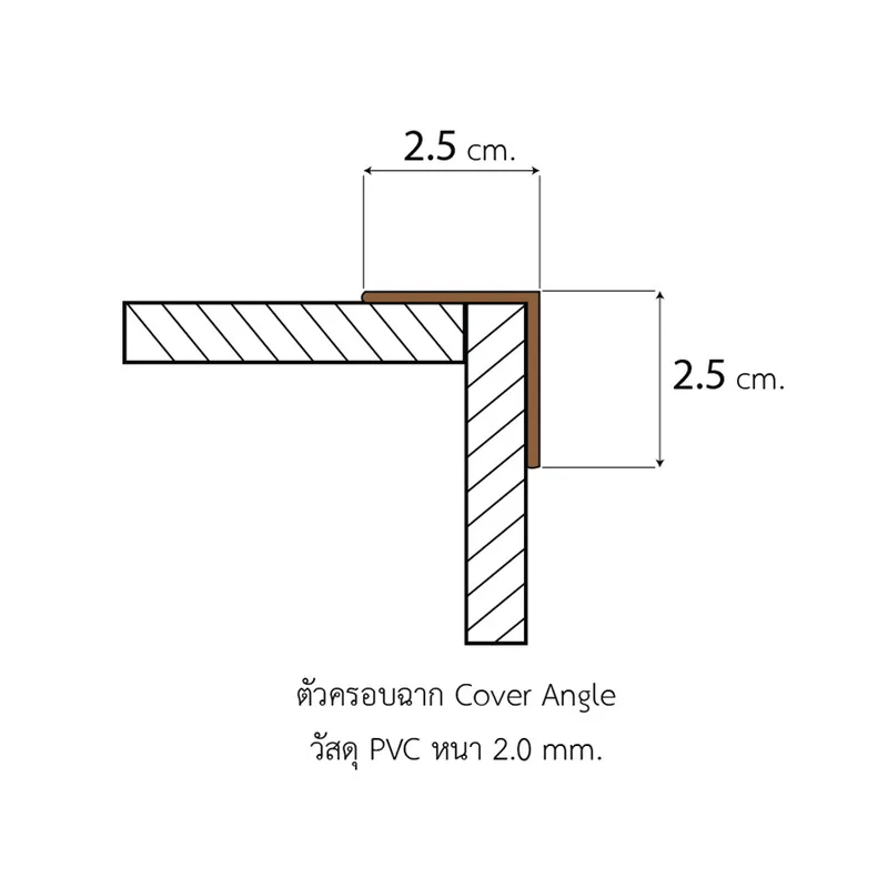 ตัวครอบฉาก (Cover Angle) ผลิตมาจากวัสดุ PVC ปิดผิวลายไม้ รหัส CA มีทั้งหมด 5 สี