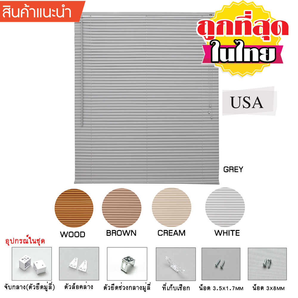 KACEE มู่ลี่ไวนิล ม่านหน้าต่าง มู่ลี่ PVC มู่ลี่ ขนาดใบ 25 มิล สีชมพู ฟ้า ดำ น้ำตาลเข้ม
