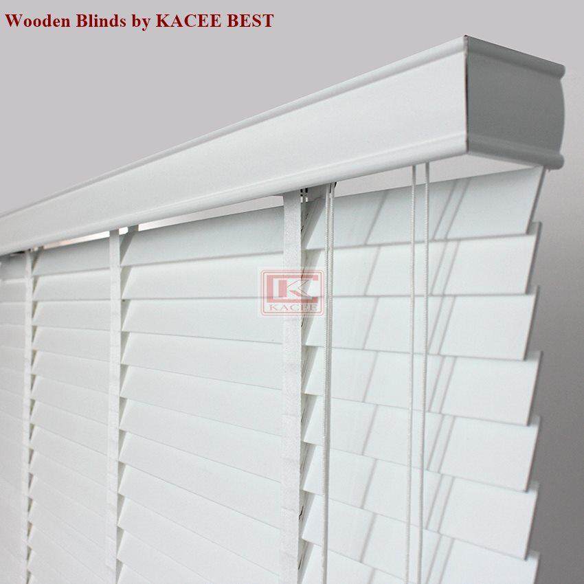 KACEE มู่ลี่ มู่ลี่ไม้ มู่ลี่ไม้บาสวูด สีขาว (White) รุ่นเชือกปรับ ขนาดใบ 50 มม.