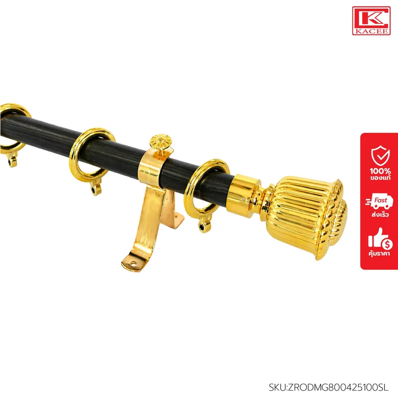 2.ขนาดกว้าง 1.10 เมตร (ขนาดไม่รวมส่วนหัวราง) อุปกรณ์ประกอบด้วย:ราง 1.10 เมตร 1 เส้น, หัวท้าย(พลาสติก) 1 คู่, สไลด์ 1 คู่, ขายึดราวม่าน 2 อัน, ห่วง(พลาสติก) 12 อัน