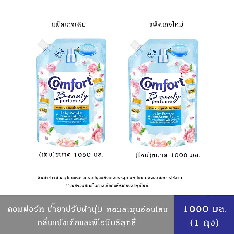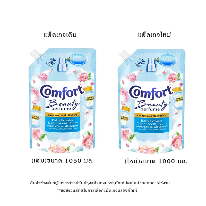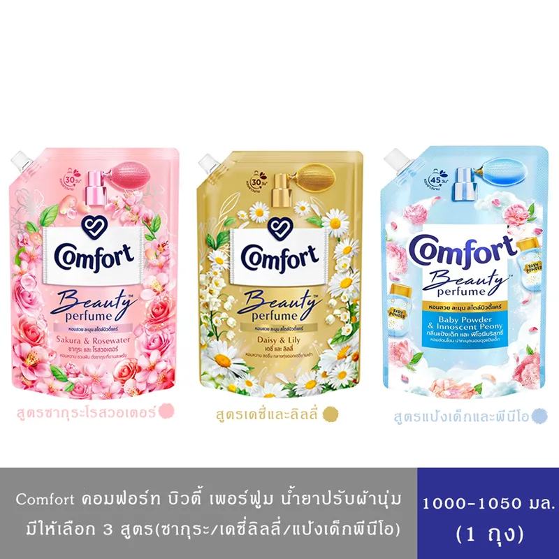 Comfort คอมฟอร์ท น้ำยาปรับผ้านุ่ม บิวตี้ เพอร์ฟูม หอมสดชื่น ติดทนนาน 45 วัน(ซากุระ/เดซี่ลิลลี่/พีโอนีฟ้า) 1,000-1,050 มล.