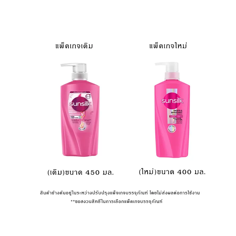 รายละเอียดสินค้า ซันซิล สมูท แอนด์ เมเนจเอเบิ้ล สีชมพู ผมมีน้ำหนัก จัดทรงง่าย ครีมนวด 400 มล. Sunsilk Smooth and Manageable Pink Conditioner 400 ml.