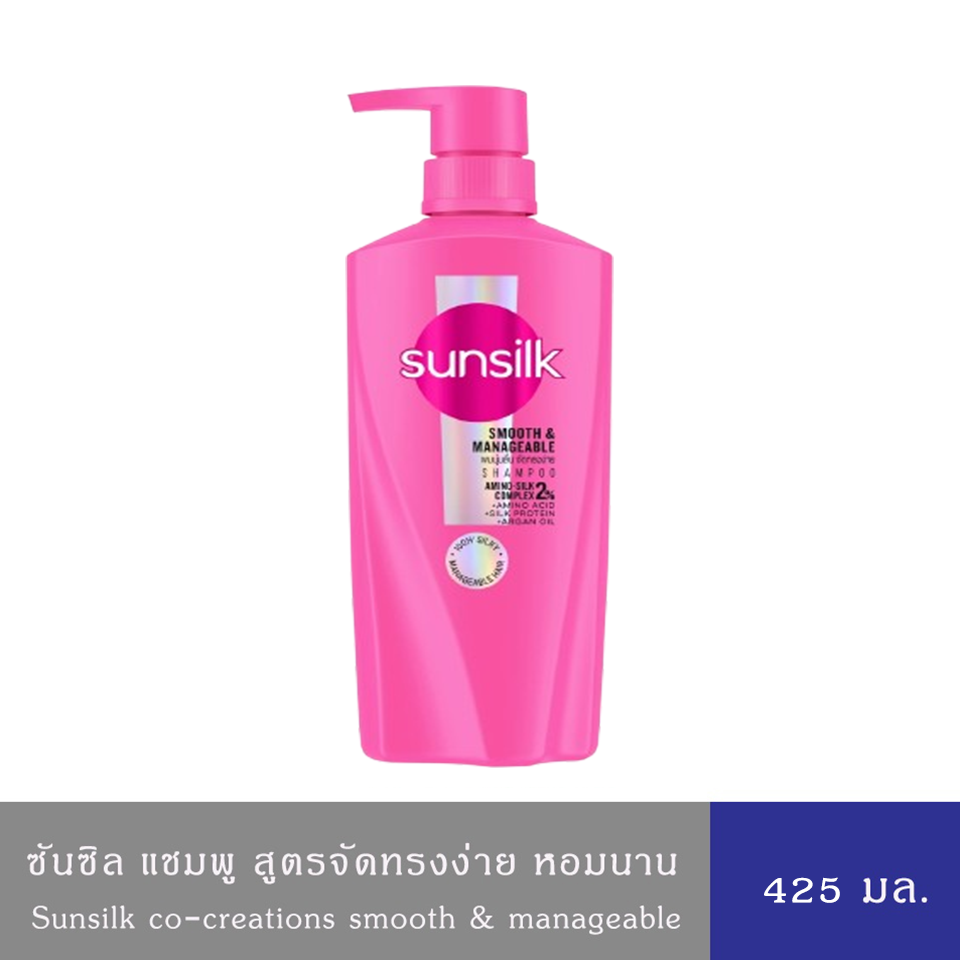 รายละเอียดสินค้า ซันซิล สมูท แอนด์ เมเนจเอเบิ้ล สีชมพู ผมมีน้ำหนัก จัดทรงง่าย แชมพู 425 มล. Sunsilk Smooth and Manageable PinkShampoo 425 ml.