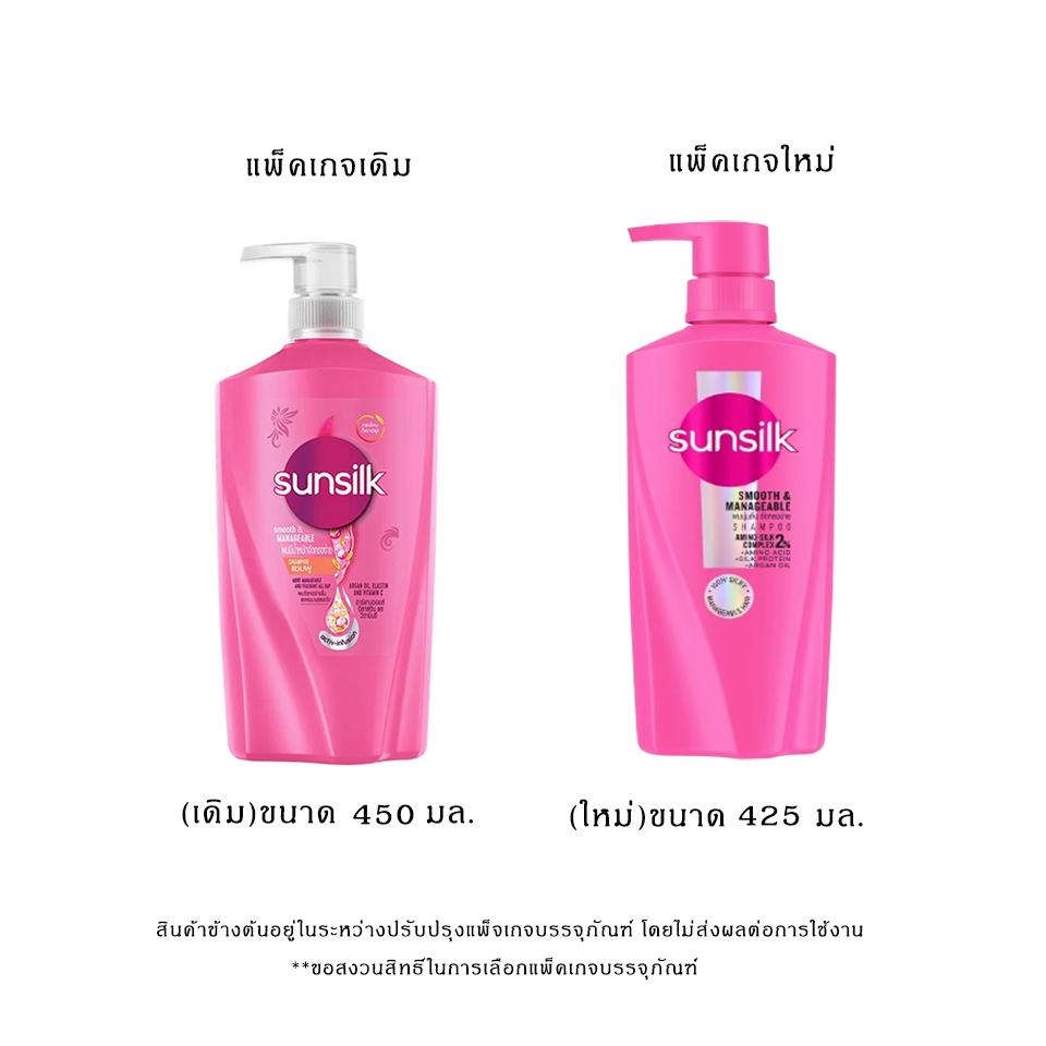 ซันซิล สมูท แอนด์ เมเนจเอเบิ้ล สีชมพู ผมมีน้ำหนัก จัดทรงง่าย แชมพู 525 มล. Sunsilk Smooth and Manageable PinkShampoo 525 ml.