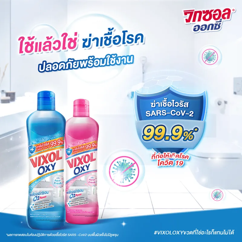 Vixol #Oxy #วิกซอล #น้ำยาล้างห้องน้ำ #ผนังห้องน้ำ #สุขภัณฑ์ #คราบหมดจด