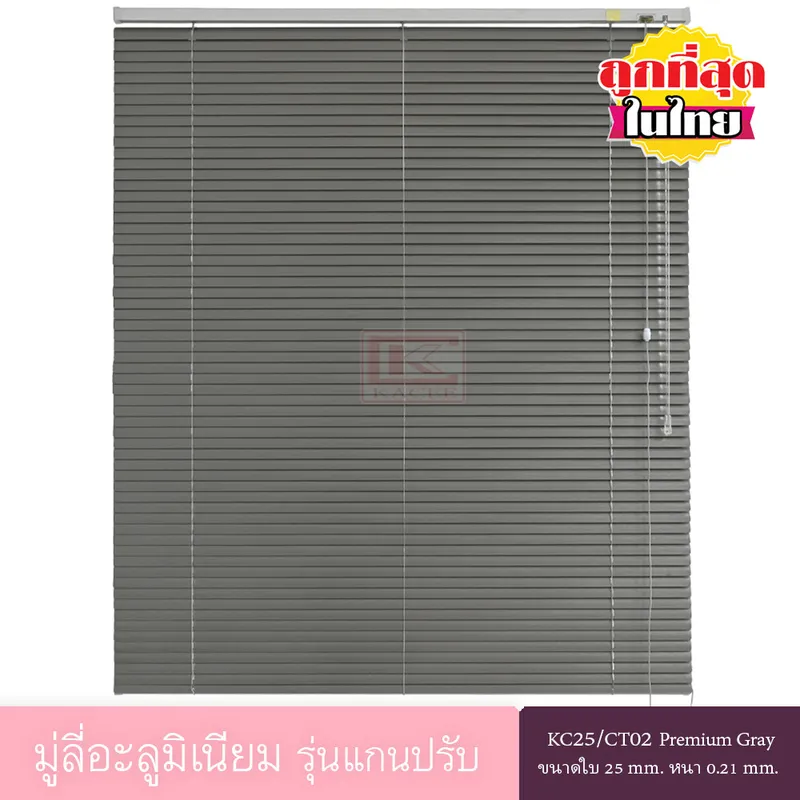 * ใน 1 ชุดจะประกอบด้วย : มู่ลี่อะลูมิเนียมขนาดใบกว้าง 25 มม. หนา 0.21 มม. รหัส KC25/CT02 สี Premium Gray