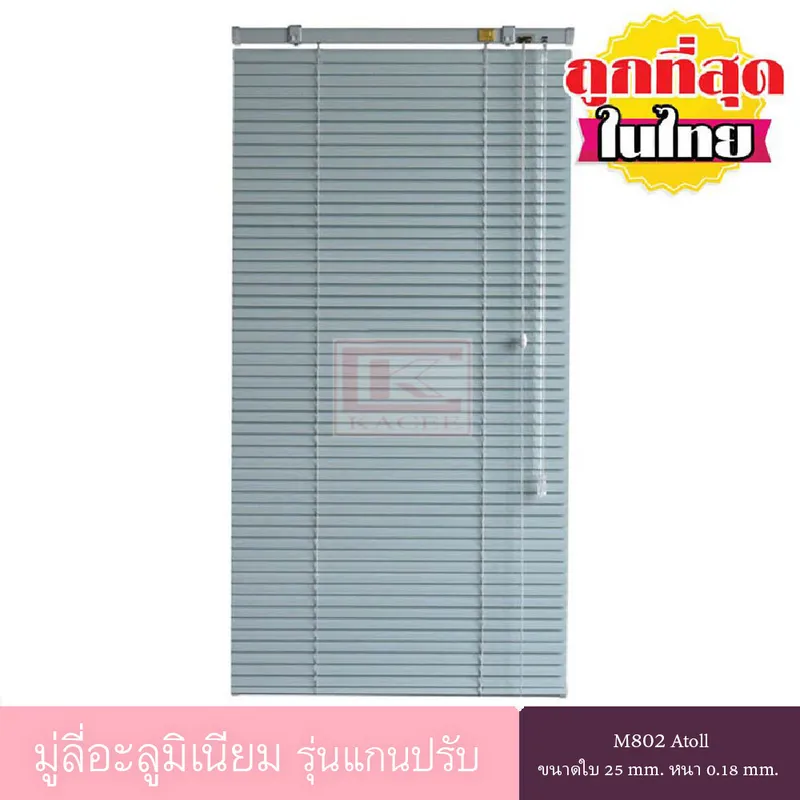 * ใน 1 ชุดจะประกอบด้วย : มู่ลี่อะลูมิเนียมขนาดใบกว้าง 25 มม. หนา 0.18 มม. รหัส M802 สี Atoll