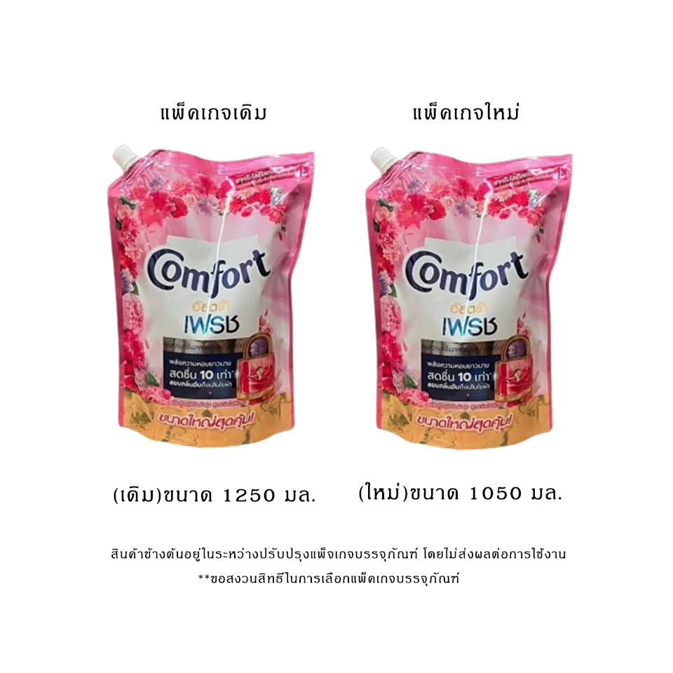 -(สินค้าอยู่ระหว่างปรับเปลี่ยนแพ็คเกจบรรจุภัณฑ์)Comfort คอมฟอร์ท อัลตร้า ผลิตภัณฑ์ปรับผ้านุ่ม สูตรเข้มข้น หอมยาวนาน สูตรสีฟ้า,ชมพู,เขียว ถุงเติม 1,050-1,250 มล.ีฟ้า,ชมพู,เขียว ถุงเติม 1,250 มล.