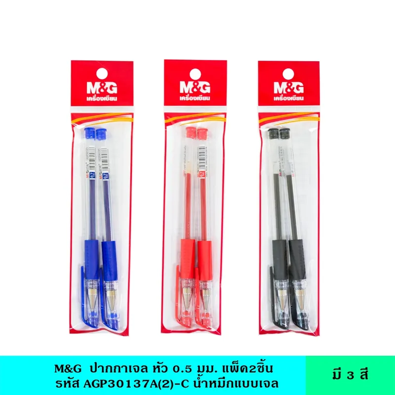 M&G ปากกาเจล หัว 0.5 มม. แพ็ค2ชิ้น มี 3 สี รหัส AGP30137A(2)-C ปากกาคุณภาพเยี่ยม น้ำหมึกแบบเจล เอ็มเขียนลื่น เขียนได้ยาว เส้นคมชัด ไม่ขาดตอน แอนด์จี