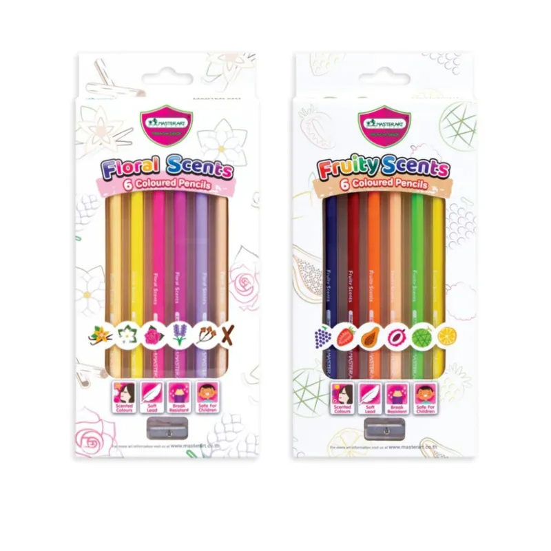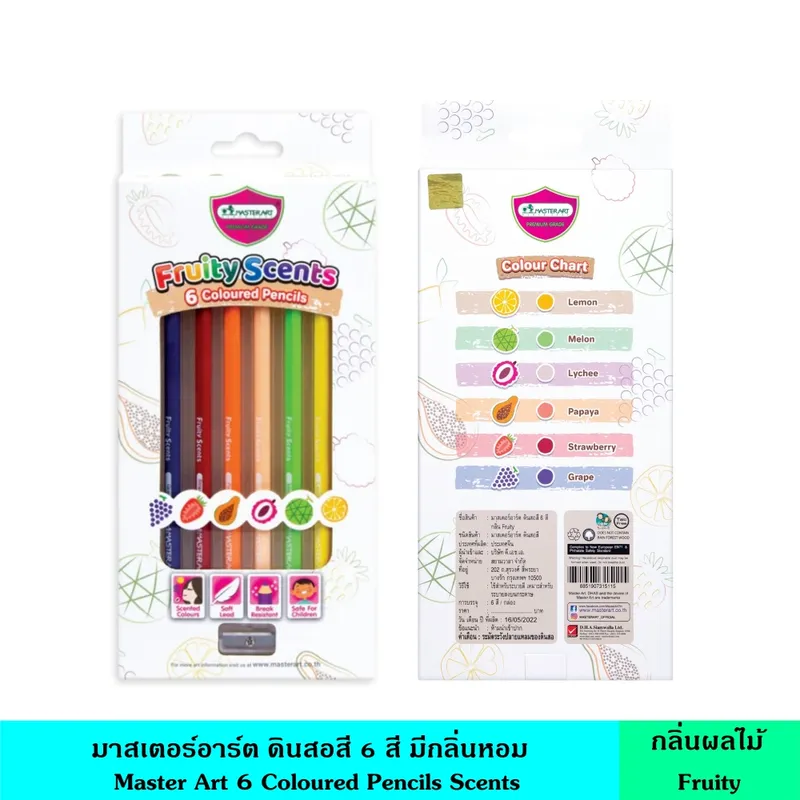 Master Art มาสเตอร์อาร์ต ดินสอสี 6 สี มีกลิ่นหอม กลิ่นดอกไม้ Floral ผลไม้ Fruity Scents ระบายลื่น เนียนนุ่ม ผลิตจากไม้คุณภาพดี แถมฟรี กบเหลาดินสอ 1 ชิ้นในกล่อง