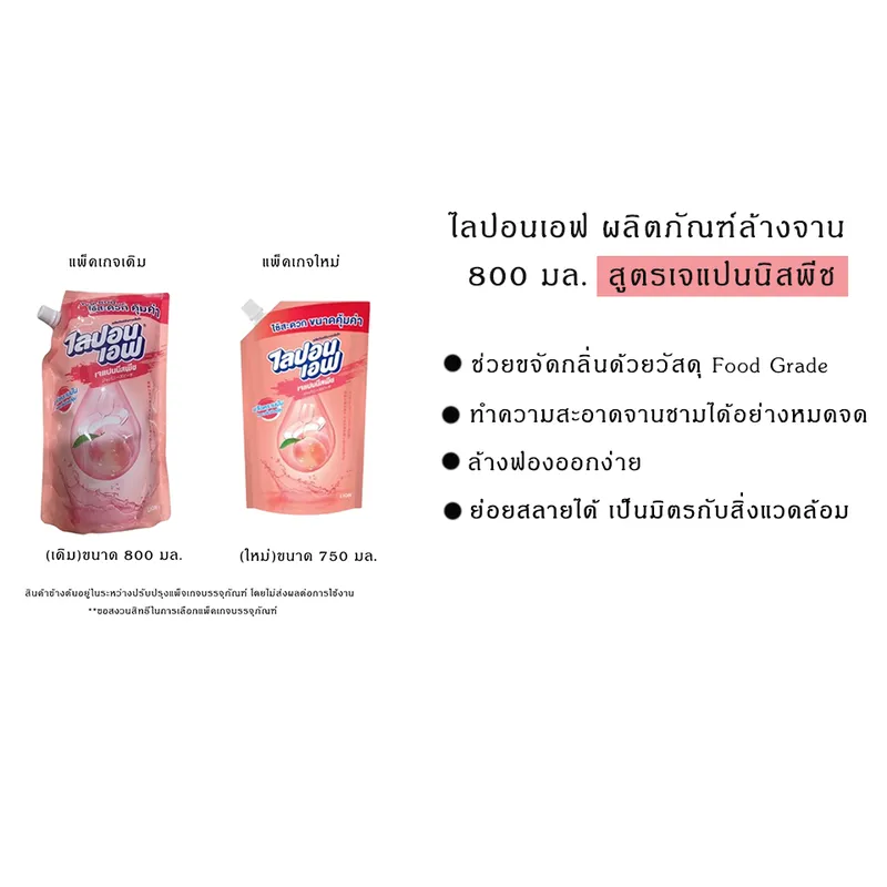 ทั้งยังให้คุณรู้สึกผ่อนคลายจากกลิ่นหอมของมะกรูด (3)ผลิตภัณฑ์ ล้างจาน ไลปอนเอฟ เจแปนนีสพีช สัมผัสกลิ่นหอมของ ไลปอนเอฟ เจแปนนีสพีช จากแรงบันดาลใจของกลิ่นพีชญี่ปุ่น พร้อมด้วยคุณสมบัติในการขจัดคราบมัน
