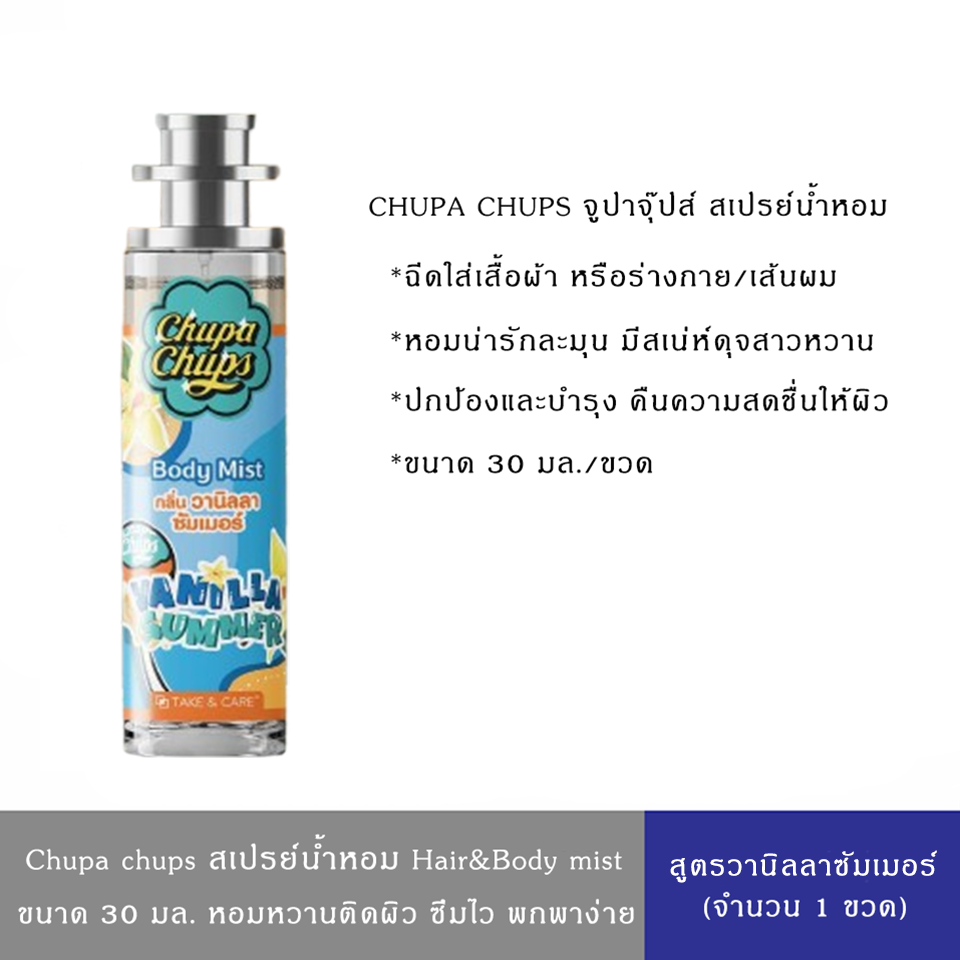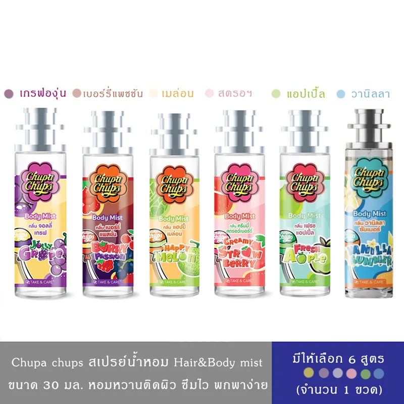 -(มีให้เลือก 5 กลิ่น)Chupa Chups สเปรย์น้ำหอม แฮร์แอนด์บอดี้มิส สเปรย์น้ำแร่ เพิ่มความหอมให้ผิวและเส้นผม 30 มล.