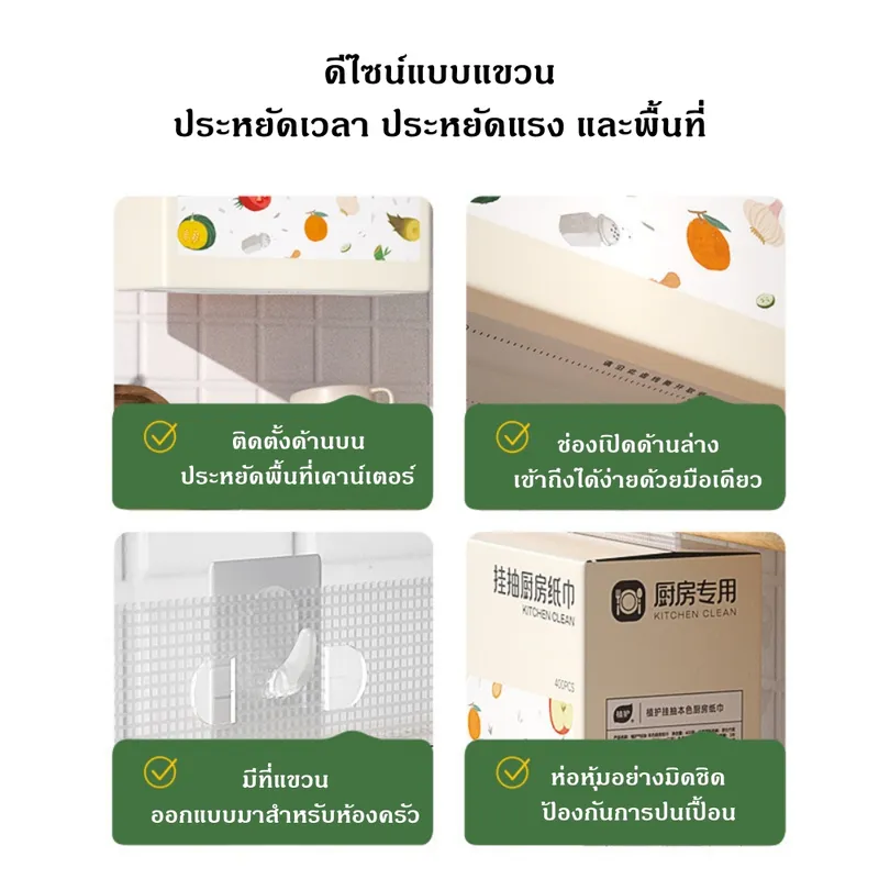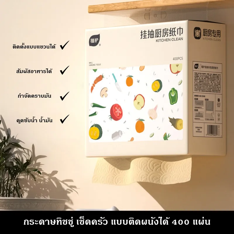 ● กระดาษทิชชู่ เช็ดครัว แบบติดผนังได้ 400 แผ่น มีที่แขวน ออกแบบมาสำหรับห้องครัว ดูดซับน้ำ น้ำมัน คราบไขมัน ผลิตจากเยื่อไผ่บริสุทธิ์ ปลอดภัยสำหรับการสัมผัสอาหาร