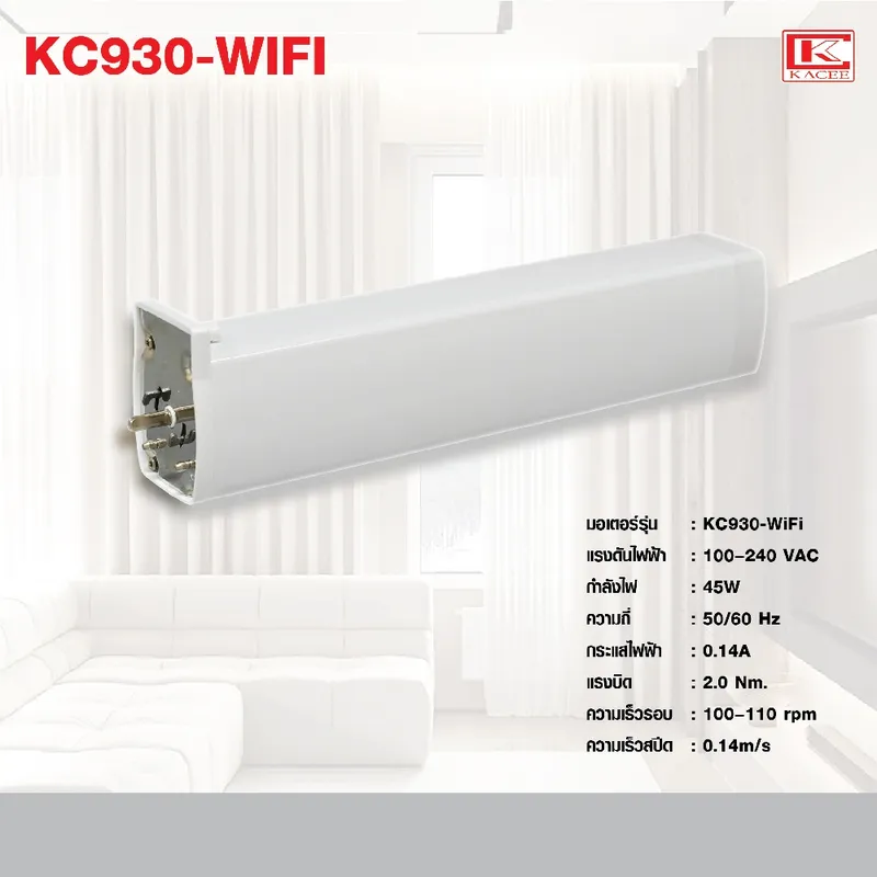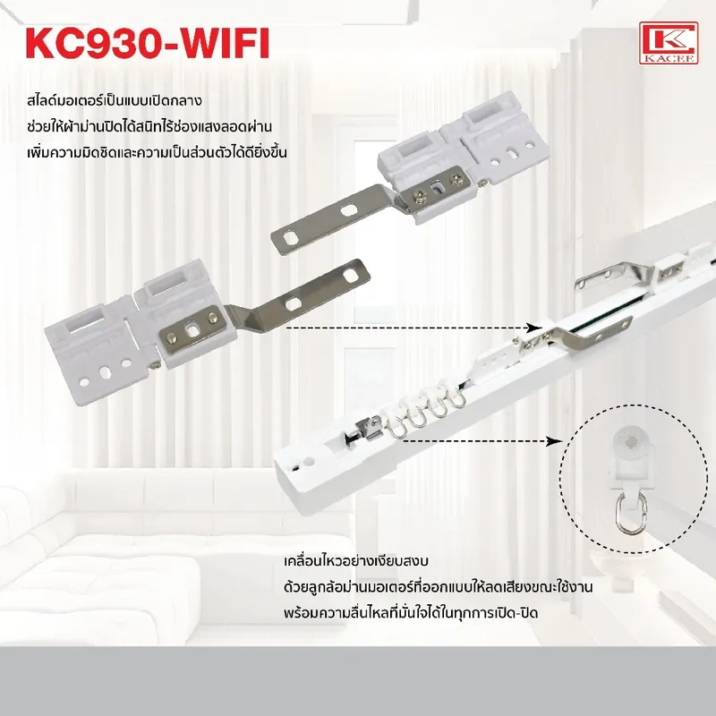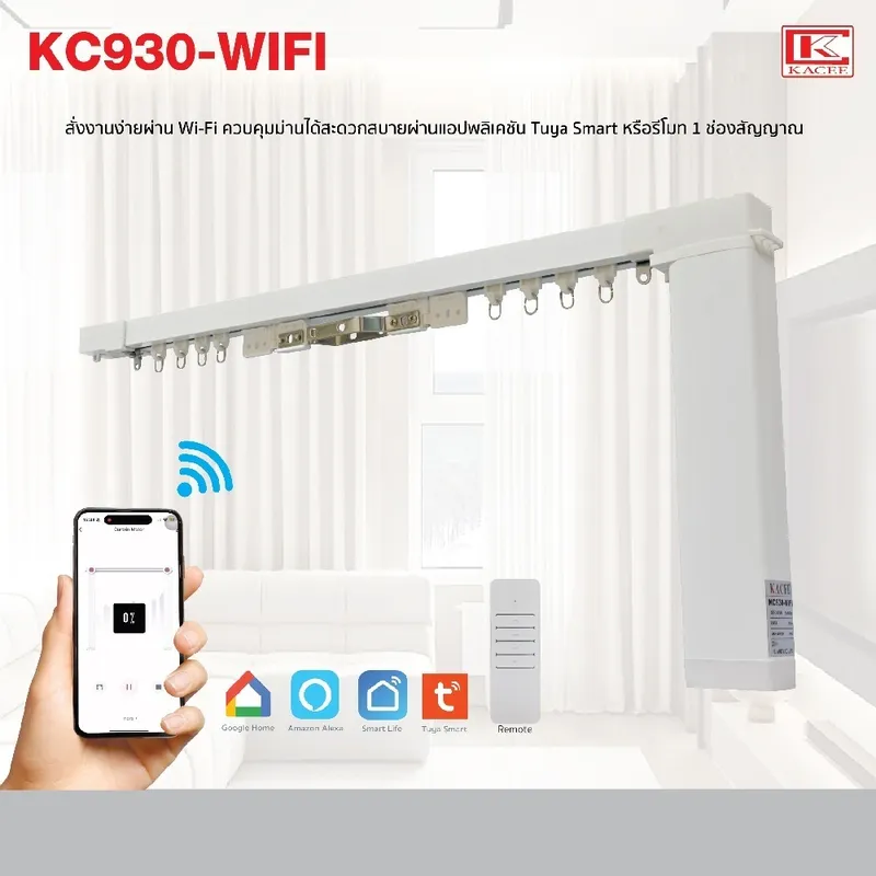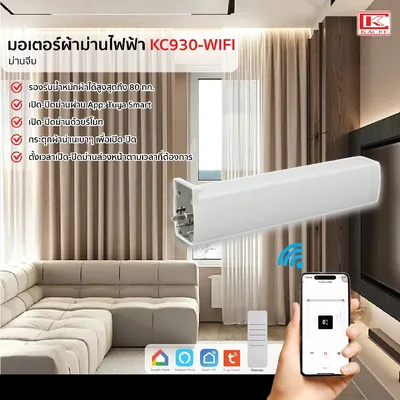 มอเตอร์ผ้าม่านไฟฟ้าอัจฉริยะ เชื่อมต่อ Wifi รุ่น KC930-Wifi พร้อมรางแถมฟรีรีโมท