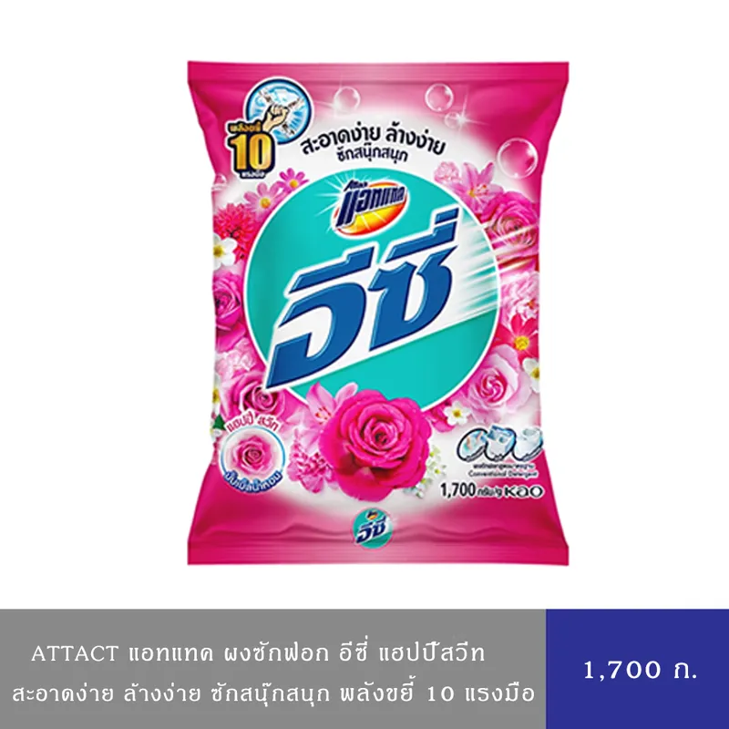 ให้คุณพ่อบ้านคุณแม่บ้านสนุกสนานไปกับการซักผ้า ด้วยแอทแทค อีซี่ ผงซักฟอกที่มีฟองนุ่ม ขยี้คราบสกปรกออกง่าย