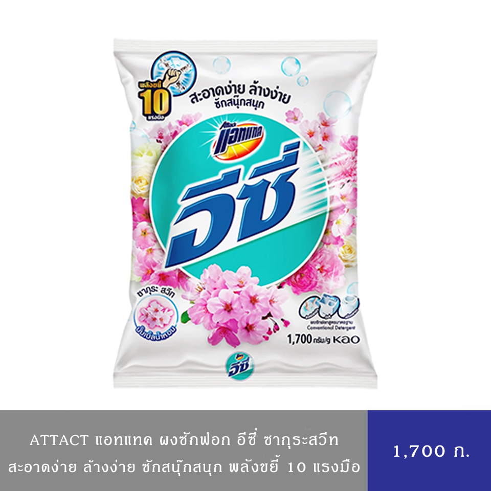-(มีให้เลือก 4 สูตร)Attack แอทแทค อีซี่ ผงซักฟอก พลังขยี้10แรงมือ สะอาดง่าย ขนาด 1,600-1,700 กรัม
