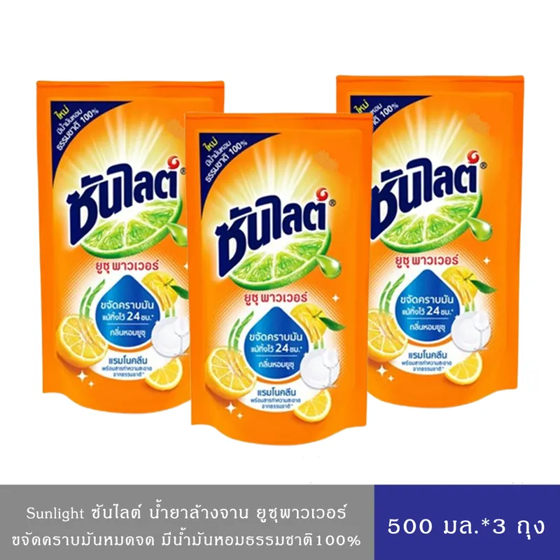 -Sunlight ซันไลต์ น้ำยาล้างจาน ยูซุ พาวเวอร์ ขจัดคราบมัน 500มล.