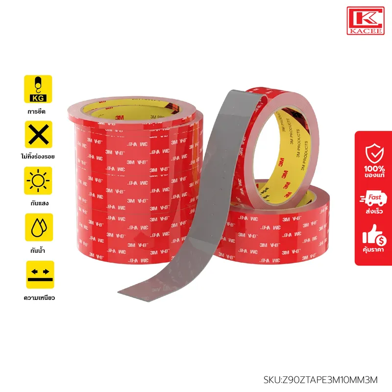 • เทปกาวสองหน้า 3M มี 4 ขนาด เทปกาว สามเอ็ม กาวอะคริลิค ไม่ทิ้งคราบกาวเมื่อลอกออก ความหนา 0.8 มม. ความยาว 3 ม. แข็งแกร่ง มีความเหนียวแข็งแรง ไม่ลอกหรือหลุดง่าย