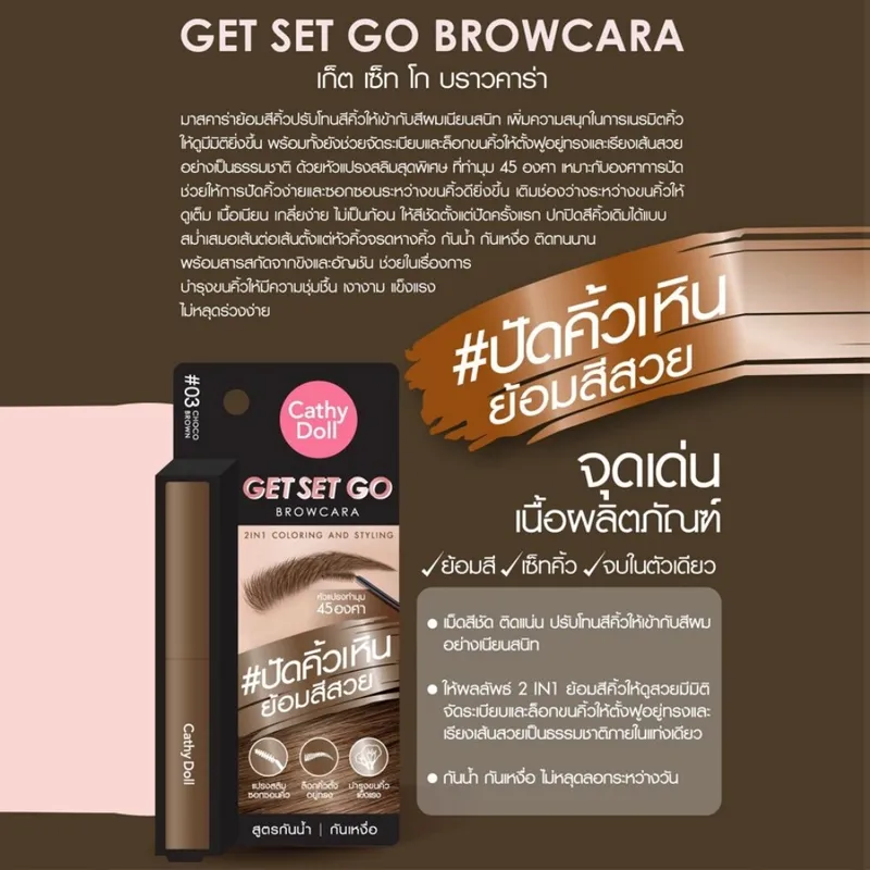 มาสคาร่าย้อมสีคิ้วปรับโทนสีคิ้วให้เข้ากับสีผมเนียนสนิท เพิ่มความสนุกในการเนรมิตคิ้วให้ดูมีมิติยิ่งขึ้น พร้อมทั้งยังช่วยจัดระเบียบและล็อคขนคิ้วให้ตั้งฟูอยู่ทรงและเรียงเส้นสวยอย่างเป็นธรรมชาติ ด้วยหัวแปรงสลิมสุดพิเศษ ที่ทำมุม 45 องศา เหมาะกับองศาการปัด ช่วยให้การปัดคิ้วง่ายและซอกซอนระหว่างขนคิ้วดียิ่งขึ้น เติมช่องว่างระหว่างขนคิ้วให้ดูเต็ม เนื้อเนียน เกลี่ยง่าย ไม่เป็นก้อน ให้สีชัดตั้งแต่ปัดครั้งแรก ปกปิดสีคิ้วเดิมได้แบบสม่ำเสมอเส้นต่อเส้นตั้งแต่หัวคิ้วจรดหางคิ้ว กันน้ำ กันเหงื่อ ติดทนนาน พร้อมสารสกัดจากขิงและอัญชัน ช่วยในเรื่องการบำรุงขนคิ้วให้มีความชุ่มชื้น เงางาม แข็งแรง ไม่หลุดร่วงง่าย