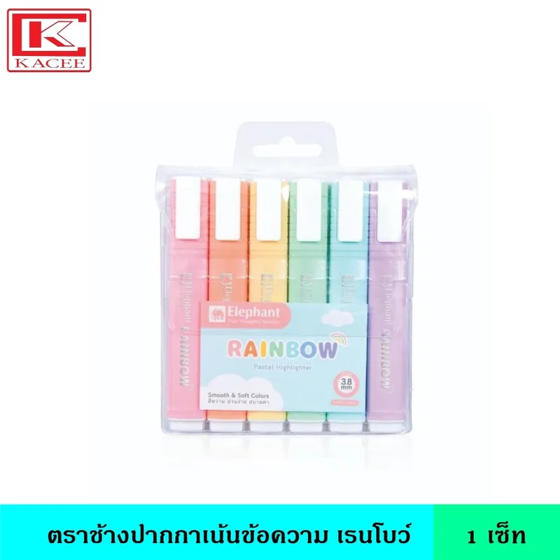 ” ตราช้างปากกาเน้นข้อความ เรนโบว์ คละสี