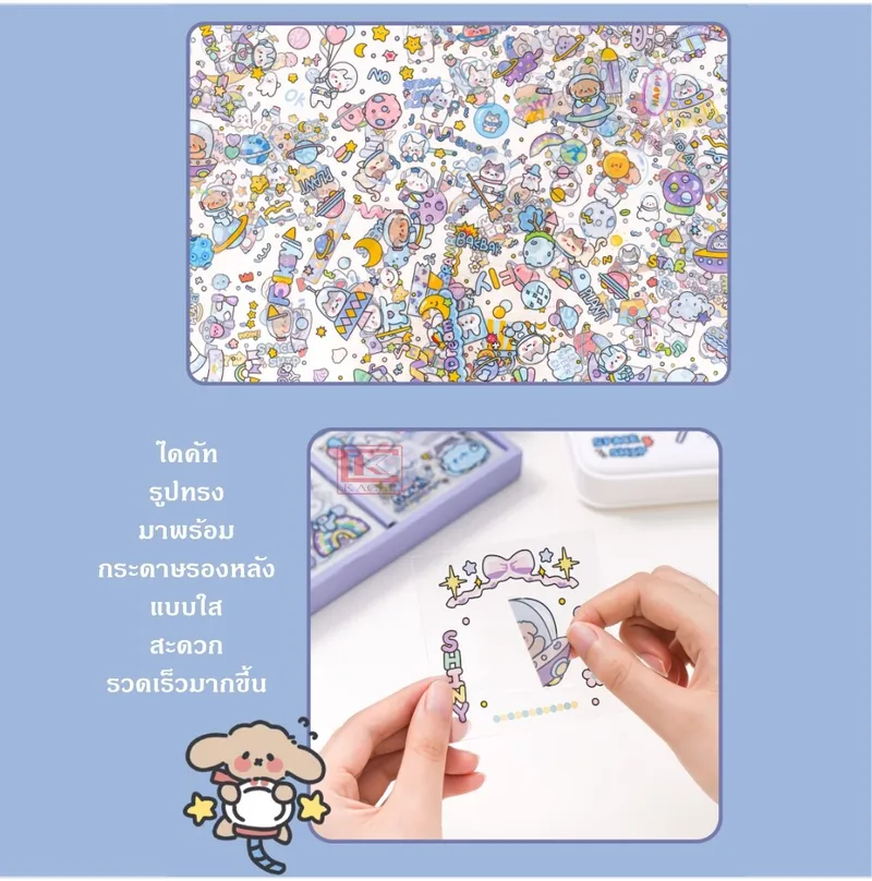 • สติ๊กเกอร์ DIY. A มี 13 ลาย สติ๊กเกอร์ PVC แบบใส กันน้ำ ลายการ์ตูนของตกแต่งไดอารี่ สมุดบันทึก แก้ว กระบอกน้ำ หรือตามพื้นผิวเรียบ ๆ จำนวน 100 แผ่น ลายไม่ซ้ำกัน