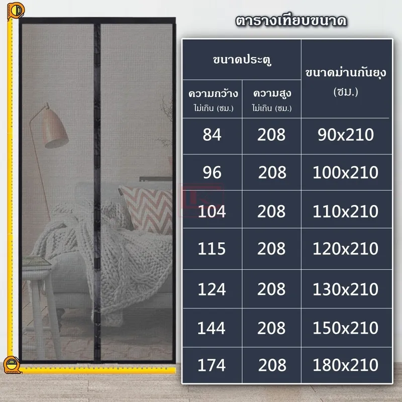 • คำแนะนำในการเลือกม่ายกันยุง ความกว้าง ควรกว้างกว่า 8 – 10 ซม. ของประตู และ ความสูง ควรสูงกว่าประตู 6 ขึ้นไป