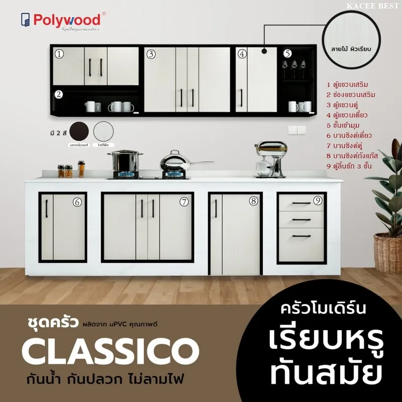 • บานซิงค์คู่ uPVC รุ่น Classico ยี่ห้อ Polywood ผลิตขึ้นจากพลาสติก uPVC คุณภาพดี หน้าบานประกอบด้วยแผ่นโครงไม้สังเคราะห์ที่มีความแข็งแรงทนทาน ผสาน EPS BOARD ชนิดพิเศษที่มีความหนาแน่นสูง ช่วยปกกันความร้อน ไม่ลามไฟ ปิดผิวหน้าบานด้วยแผ่นลามิเนตผิวเรียบ สวยงามตลอดทั้งบาน ติดตั้งง่าย และง่ายต่อการทำความสะอาด มีหลากหลายรูปแบบและขนาดให้เลือกเพื่อความเหมาะสมตามการใช้งาน