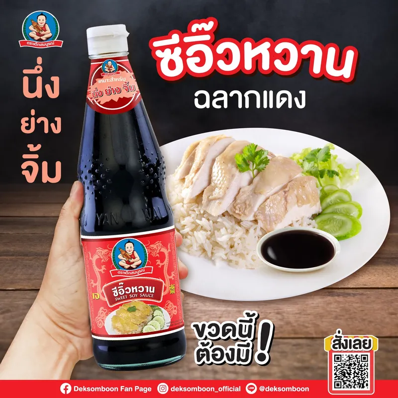 Deksomboon ซีอิ๊วหวาน ฉลากแดง ตราเด็กสมบูรณ์ 400 กรัม Sweet Soy Sauce 400 g. ทำเมนูนึ่ง ย่าง จิ้ม ซีอิ๊วหวานเนื้อข้น ให้รสหวาน ใช้ปรุงอาหารที่ต้องการเพิ่มรสหวาน หรือใช้สำหรับเป็นเครื่องจิ้มทางคู่กับเมนูนึ่ง ย่าง จิ้ม เช่นข้าวมันไก่ หมูหัน เป็ดปักกิ่ง อร่อยไม่เหมือนใครด้วยรสชาติที่กลมกล่อม #เด็กสมบูรณ์ #ซีอิ๊ว #ประกอบอาหาร #ซีอิ๊วหวาน #หวานหอม