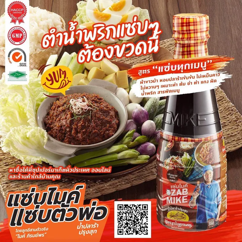 “ZAB MIKE น้ำปลาร้าปรุงสุก แซ่บไมค์ สูตรแซ่บทุกเมนู 350 มล. แซ่บไมค์น้ำปลาร้าปรุงสุก สูตรแซ่บทุกเมนู ทำอาหารได้หลากหลายมากยิ่งขึ้นไม่ว่าจะ แกง ต้ม ยำ หลน ลาบ ส้มตำ บวกความแช่บนัวร์ กลิ่นหอม รสเข้มข้น อร่อยชัวร์ทุกจาน จัดจำหน่ายโดยอำพลฟูดส์ ตัวแทนจำหน่ายอย่างเป็นทางการ น้ำปลาร้าปรุงสุก แซ่บไมค์ หอม อร่อย สะอาด สะดวก ใช้ปรุงอะไรอร่อย ตำส้มตำ ยำ แกง ผัด ใส่ปรุงรสได้หมด