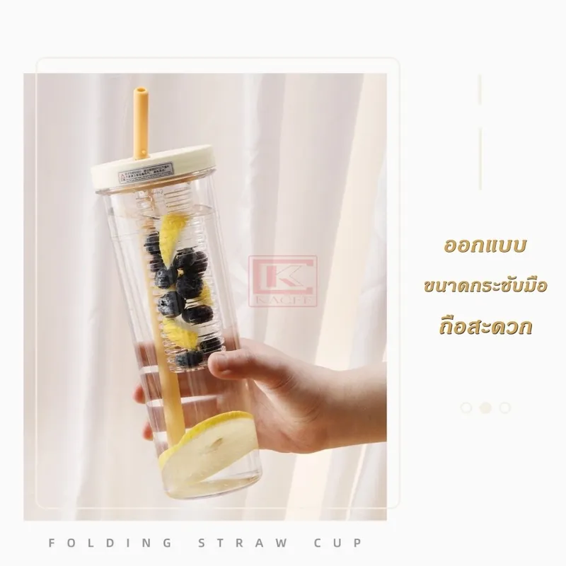 แก้วน้ำ แก้ว แก้วน้ำพร้อมที่กรอง แก้วชา แก้วแช่ชา แก้วแช่ผลไม้ 700 มล. พร้อมหลอดพับได้ ล้างทำความสะอาดง่าย