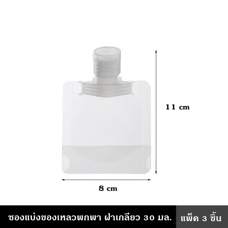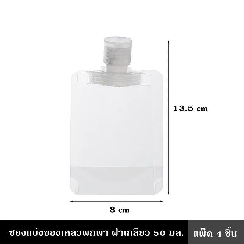 • ซองแบ่งของเหลวพกพา ฝาเกลียว เหมาะสำหรับครีม โลชั่น และของเหลวชนิดอื่นๆทุกชนิด• ทำจากพลาสติกสูงเป็นมิตรกับสิ่งแวดล้อมและปลอดภัยแข็งแรงเพียงพอและทนทาน• ง่ายต่อการพกพาเครื่องสำอางและสามารถใช้ซ้ำได้หลังจากล้าง• ซองโปร่งใสช่วยให้คุณเห็นปริมาตรและสีของของเหลวในขวดเพื่อการเติม• ใช้เก็บเจลทำความสะอาดมือแชมพูโลชั่นบำรุงผิวเจลอาบน้ำครีมล้างหน้าและครีมบำรุงผิวหน้า• ป้องกันการรั่วซึมและป้องกันไม่ให้อากาศและสารปนเปื้อนอื่น ๆ• ช่วยประหยัดพื้นที่กระเป๋า และ สามารถควบคุมปริมาณในการเดินทาง• เหมาะสำหรับคนที่ชอบท่องเที่ยว เข้าป่า แคมป์ปิ้ง• ขนาดเล็ก น้ำหนักเบา พกพาสะดวก สะอาด ปลอดภัย• ผลิตจากโรงงานผลิตที่ได้มาตรฐาน• มาตรฐาน Food Grade คุณภาพสูง ทนต่อแรงกด การเจาะ และฉีกขาด• ฝาเปิด-ปิด ใช้งานง่าย ปิดสนิท ไม่รั่วซึม ไม่มีกลิ่น• ขนาด 30 ml. กว้าง 8 * ยาว 8 * สูง 2.5 ซม.• ขนาด 50 ml. กว้าง 8 * ยาว 9 * สูง 2.5 ซม.• ขนาด 30 ml. กว้าง 9 * ยาว 13 * สูง 2.5 ซม.• (1แพ็ค) บรรจุ 3 ชิ้น 3 ขนาด