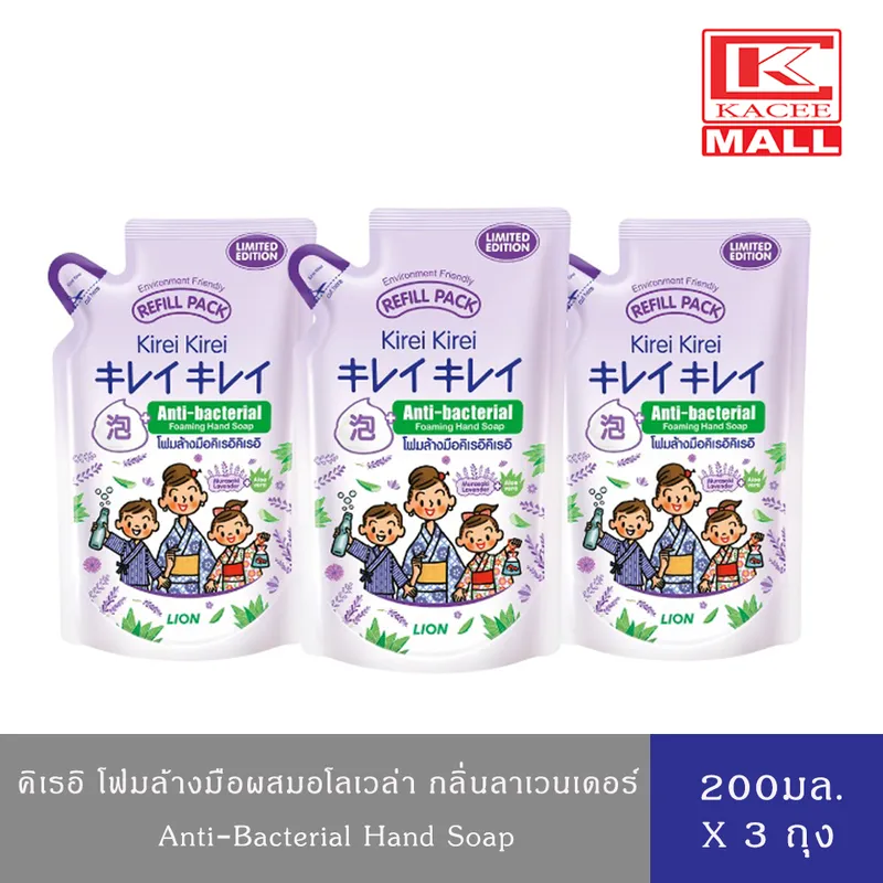 Kirei Kirei โฟมล้างมือ คิเรอิ คิเรอิ กลิ่น Murazaki Lavender & Aloevera ชนิดถุงเติม 200 ml 3 ถุง- มูราซากิ ลาเวนเดอร์
