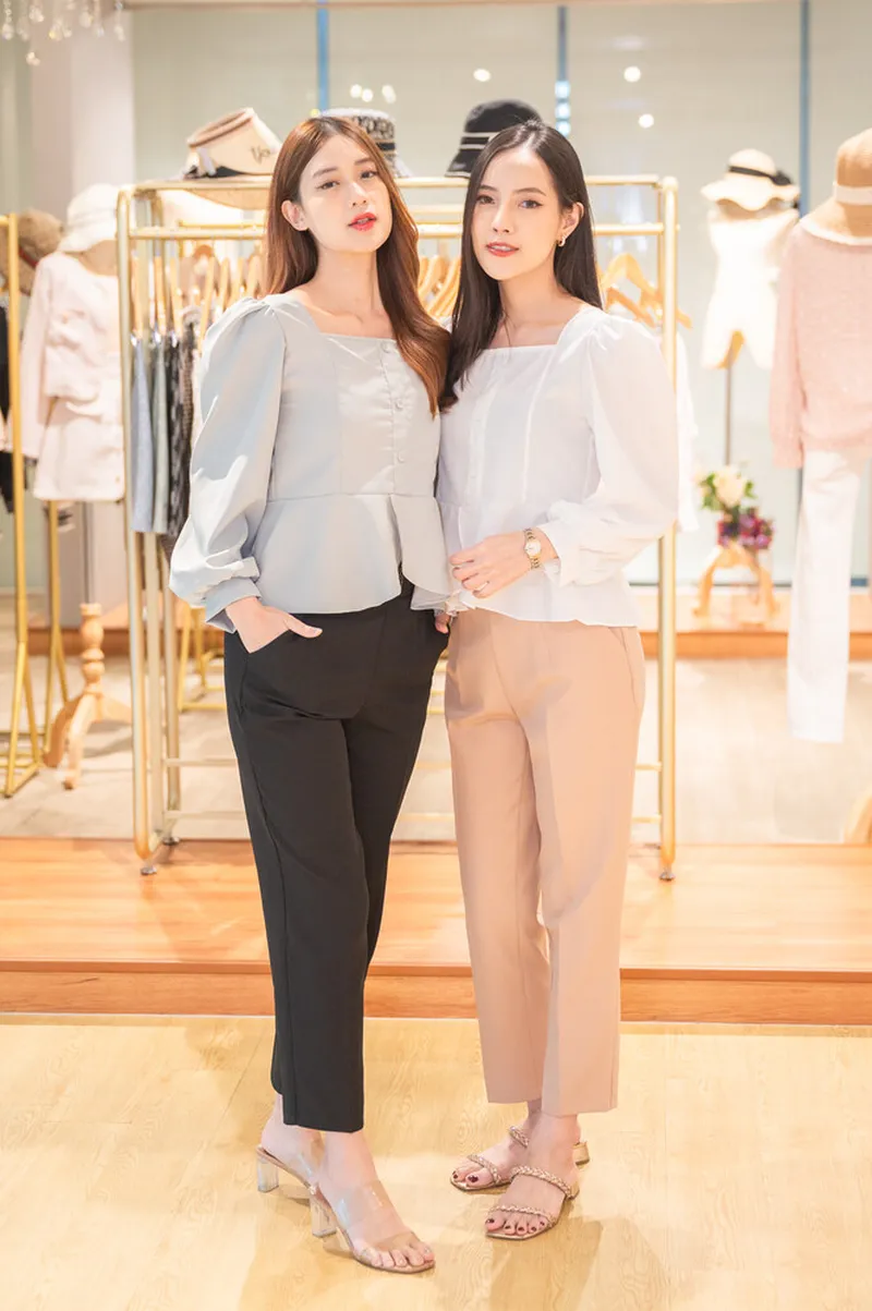 เสื้อแขนยาวสม็อคหลังชายระบาย กระดุมหน้า3เม็ด สีพื้นเรียบ