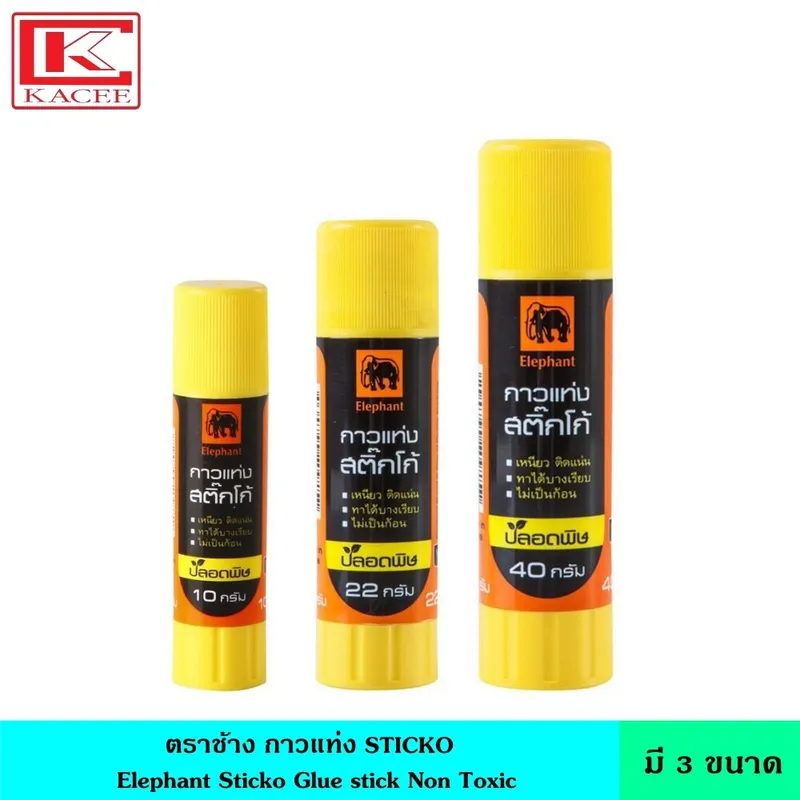 Elephant ตราช้าง กาวแท่ง STICKO มี 3 ขนาด 10/22/40 กรัม กาวยู้ฮู กาวแท่งสติ๊กโก้ ติด ทนทาน เนื้อกาวไม่เกาะเป็นก้อนกระดาษ