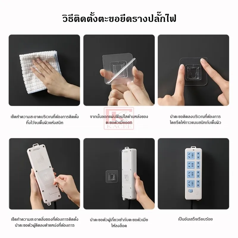 ตะขอ ตะขอแขวนของ ตะขอยึดรางปลั๊กไฟ กาวในตัว ตะขอแขวนอเนกประสงค์ ที่เกี่ยวของ เหนียวแน่น ทนทาน รับน้ำหนักได้ดี ฮุกแขวนของ